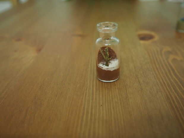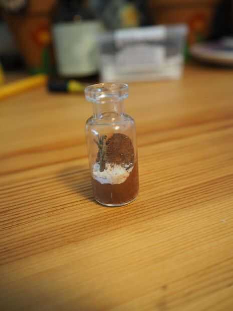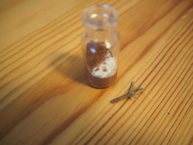 Para el árbol, tome un pedazo de madera. :) No en serio, tomar la bifurcación "en forma de árbol" más pequeño puedes finde, mina fue menos de 2cm de largo. Ahora la planta el arbolito con algún pegamento en el agujero preparado.
