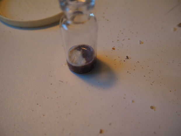 Primero Llene un tercio del frasco con una mezcla de arena-lacado rojo. El mantener el frasco en un ángulo y deje algunos arena ejecutar manera que cubra aproximadamente la mitad de la superficie blanca. Poner algunas pequeñas dorps de laca en la blanca arena, agregar un agujero para el árbol con un palillo y dejar secar. Sostenga el frasco en el ángulo opuesto y llenar de arena roja más para forma una duna. Y otra vez, algunos laca en él un deje seque. Mientras que el secado de la laca, puede cambiar la forma de su duna con un q-Tip.