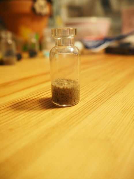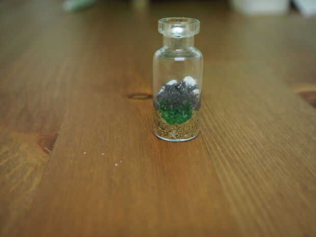 Llenar una cuarta parte del frasco con la mezcla de arena de la laca. Formar un rollo de unos 4cm con algunos gris modelado en arcilla que se ajusta sólo a través del cuello del frasco. Dejó caer en forma de S mentira. Ahora toma un palillo de dientes y asoman alrededor de la arcilla hasta que tiene la forma deseada. Los escarbadientes hará una estructura de aspecto muy realista. Tomar un pincel fino y el valle de color verde exuberante. Puede añadir un poco de arcilla blanca en las puntas para crear la nieve o a utilizar algún color acrílico blanco.