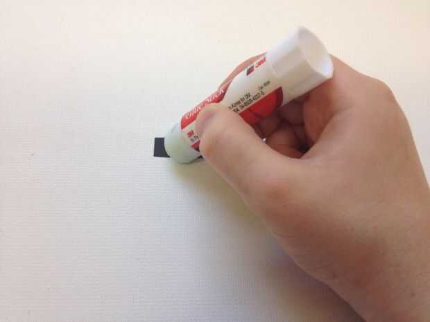 Utilice un palillo del pegamento para pegar el rectángulo al lado de la clavija que no tiene el imán pegado a él.