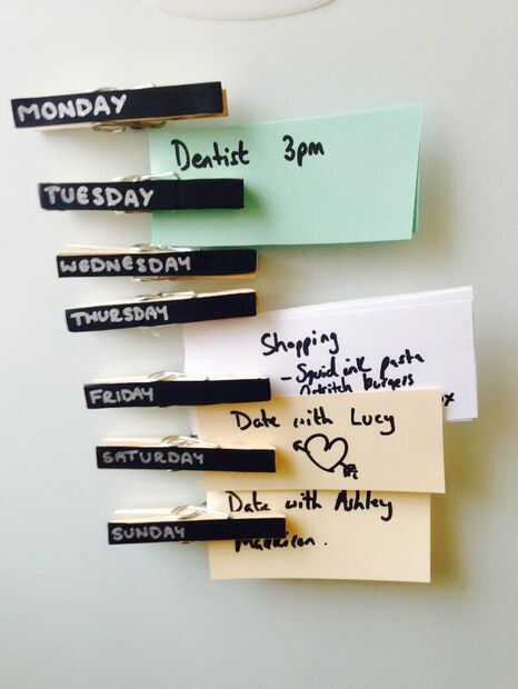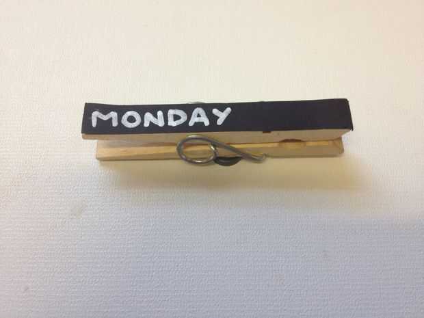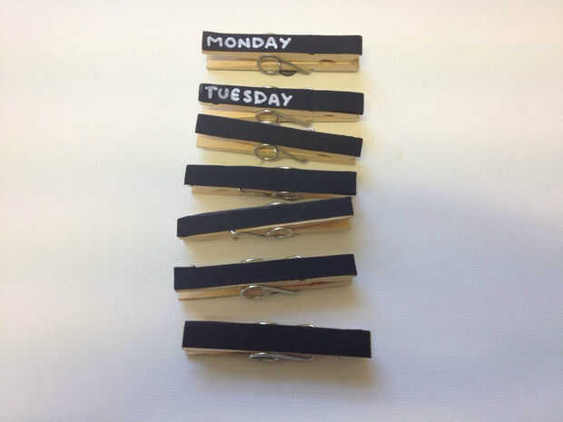 Escribir los días de la semana en sus clavijas con una pluma de plata. No frotar la tarjeta porque la escritura se mancha pero se seca en aproximadamente 1 minuto.