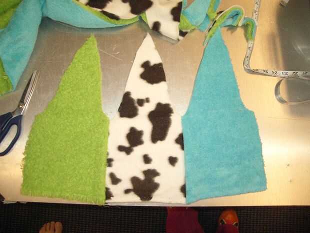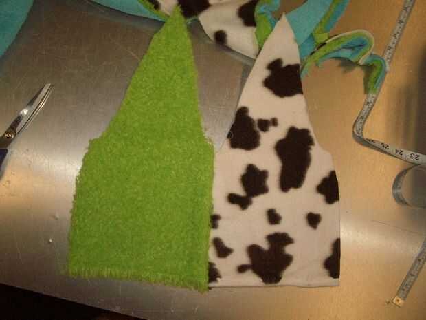 Ahora tienes 3 piezas puntiagudas idénticas. En un anillo, pero no hasta el punto, unirlas. Hacer una forma de corona, coser solamente hasta la hierba. Las imágenes deben dejar esto claro.