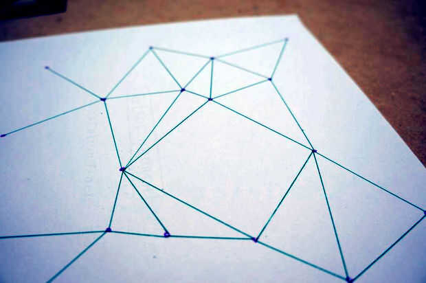 Al empezar a conectar nodos y forma triángulos cosas comenzará a conseguir más fácil. Probablemente se encontrará con escenarios donde hay hay otras opciones aparte de conectar dos nodos y completar un triángulo ya parcialmente formado. Sólo asegúrese de que no deje cualquier forma no triangular entre sus nodos y siempre no cruzar otra línea (triángulos pueden compartir espacios).