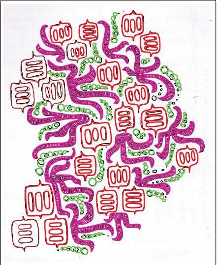 Lo primero que debes hacer es poner la figura en su propia capa en el panel Capas. Bloquear esa capa y añadir otra capa. Esto le permite agrupar cosas. Como se puede ver en la ilustración, hay tres tipos básicos de formas por lo que vamos a crear tres diferentes capas y colores para distinguir entre ellos.