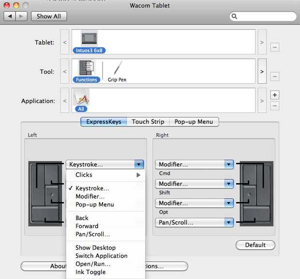 También si tu tablet tiene botones en los lados izquierdo y derecho, usarlas para accesos directos de programa como Ctrl + C (copiar), Ctrl + V (pegar), etc.. También puede hacer esto haciendo clic en el icono de funciones junto al Grip Pen. Una vez en este panel, seleccione el botón que desea modificar y haga clic en teclado en el menú desplegable. Aquí, usted puede escribir en el atajo de teclado y haga clic en Aceptar. Ver las fotos si usted necesita una visual a seguir a lo largo de con.