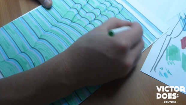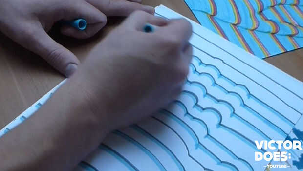 3. una vez que haya rellenado el papel con líneas seguir añadiendo las líneas de color debajo de la primera de ellas. Usé 1" negro", 1 azul, 1 gris y llena el área restante de blanco con verde. Va de oscuro a colores más claros. Asegúrese de que usted todavía que las diferencias de altura de la mano al llenar y siempre trazando líneas!