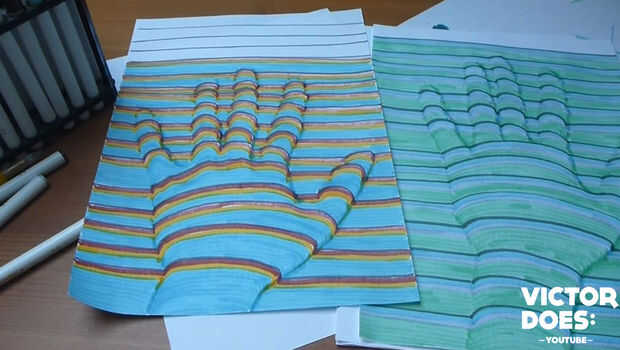 2. Utilice un rotulador oscuro para hacer las primeras líneas. Dibujar líneas rectas y elegir qué dirección comenzar, mantener dibujo las líneas en la misma dirección! Cuando estás en el exterior del "área de la mano" dibujar líneas rectas. Al entrar en el sorteo de "área de la mano" la forma de la mano/muñeca. (vea foto o video)