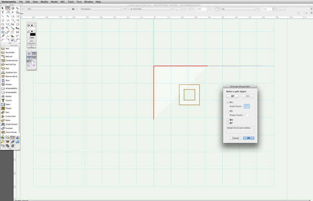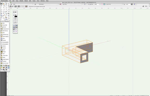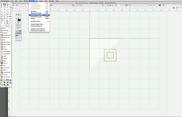 Con la herramienta Borrador se me borraba el contorno interno, que tuvo que ser lo suficientemente grande como para poner la barra de hierro en. Yo sabía que iba a usar varillas de hierro con un diámetro de 6cm, así que hice un agujero en el rectángulo de 8 cm x 8 cm para asegurarse de que encajaría correctamente.