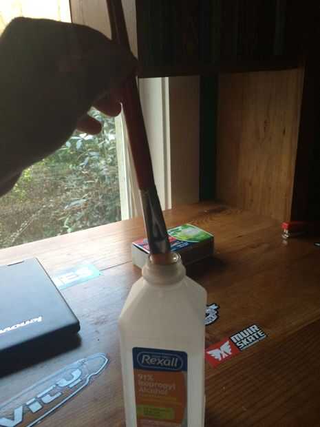 Sólo sumerja el cepillo en el alcohol de frotar un poco y bajar las gotas