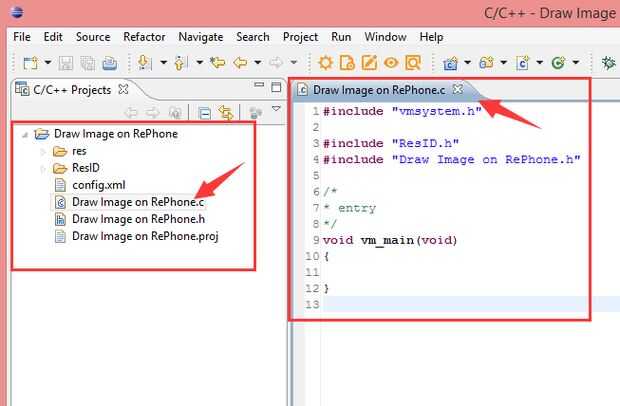 Aquí nombro el proyecto como "dibujar imagen de RePhone", haga doble clic en "dibujar imagen en RePhone.c" para abrirlo.