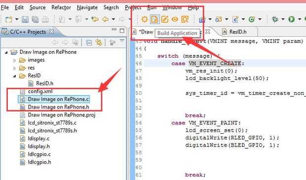 Haga clic en volver a dibujar la imagen en RePhone.c y click【Build Application】.
