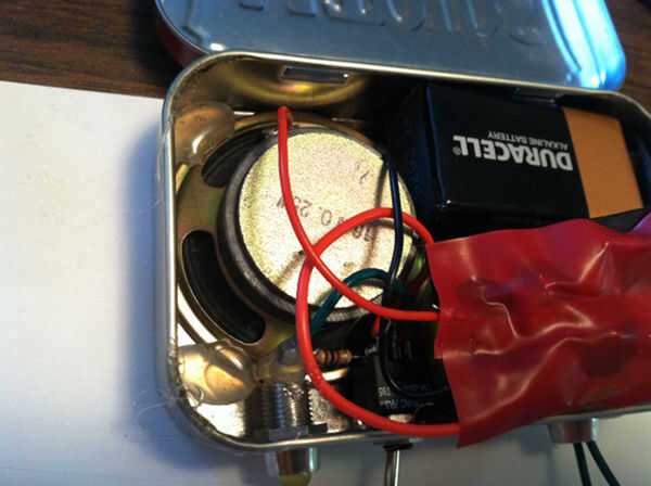 Por último pegamento caliente el borde exterior del altavoz por lo que no sacudan alrededor de la lata.