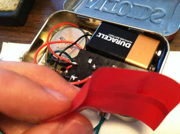Asegúrese de que los cables son todas arreglados adecuadamente. Poner pegamento caliente en los puntos de soldadura y fije la cinta aislante sobre el pegamento caliente.