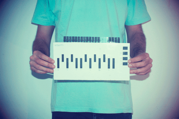 Lo diseñé el contacto entre los pines metálicos dentro de la caja y el papel se puede ver en la imagen. Pasé mucho tiempo mejorar esto, y finalmente se trata de cómo hice el contacto: soldar los contactos metálicos pequeños (cada electrodo sensor uno a uno) con el alambre. Los contactos se realizaron corte de pequeñas piezas de papel de aluminio que todas las piezas estaban pegadas entonces para espuma y poner dentro de la caja. El papel (cada plantilla) entonces fue introducido hacia los lados a la parte de la caja donde estaban los contactos metálicos. Entonces apreté las partes superiores e inferiores de la caja con banda de goma, y la espuma interior garantiza las conexiones de cada hoja metálica a un punto en el papel. No creo que se trata de la mejor manera de hacer las conexiones, pero no podía utilizar una gran cantidad de herramientas para diseñar mejor, así que esto es lo mejor que pude hacer. Sin embargo, recomiendo que usted pensar en algo más eficiente si usted está pensando en construir algo similar.
