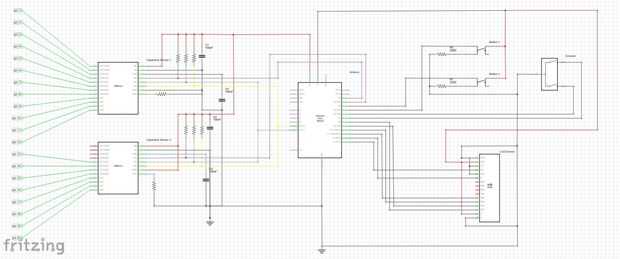 El Sensor capacitivo que utilicé para este proyecto es el MPR121. El MPR121 es un controlador de sensor táctil capacitiva impulsado por una interfaz I2C (en este caso el controlador maestro es un Arduino). El chip puede controlar hasta doce electrodos individuales. Como en mi proyecto yo estaba usando 20 pernos (para 20 botones), utilizan 2 sensores: utilicé los 12 electrodos los electrodos 1 y 8 de la segunda. Hay una guía muy útil de conexión en el sitio web de sparkfun, que hará más fácil entender cómo utilizar este sensor. Te recomiendo descargar el código que usan y modifican cuatro necesidades. Si quieres hacer cosas más avanzadas que lo que se explica en esta guía, te recomiendo para echar un vistazo a su hoja de datos para saber cómo hacerlo comunicarse con Arduino por medio de I2C.