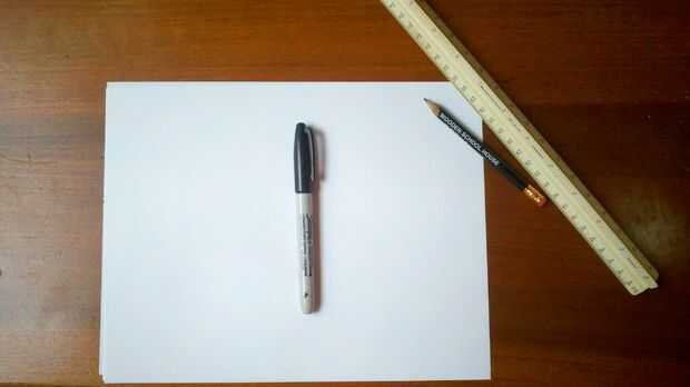 Hay sólo algunos materiales necesarios para ello y son elementos bastante comunes. Papel: cualquier papel en blanco va a funcionar. Utilizamos 8.5x11. Regla Lápiz y marcador Copia de la máquina, no necesario, pero útil.