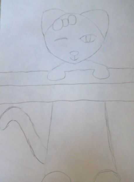 En lápiz, Esboce la línea fuera del gato, desde la cabeza y su forma de trabajo hacia abajo. Si es un gatito, deben tienen redondeadas orejas como el de la foto, si es un gato debe tener orejas puntiagudos. Apenas se centran en las distintas formas en el gato, no trate de sacar todo a la vez.