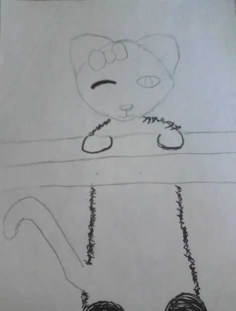 Circulan por la línea de lápiz para el guiño ojo con sharpie negro, usar líneas recorren para ir a las líneas de lápiz para el cuerpo del gato, y uso curvar líneas para el color en las patas.  Deje algo de blanco que muestra entre líneas si desea agregar naranja como lo hice.  Fotos segundo mostrar las líneas de cerca para que pueda ver los trazos.  El primero de ellos es el gato, el segundo es el gato de la pata.