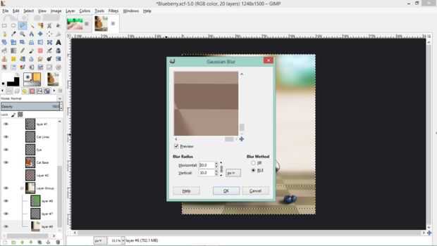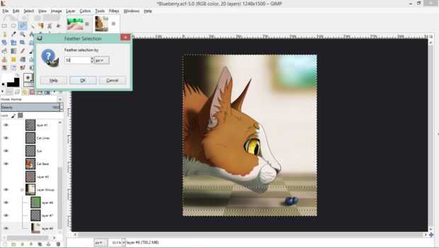 Seleccionar el fondo otra vez. Esta vez, seleccione también un poco del primer plano. Pluma la selección por 50 y gaussian blur de 30 píxeles.