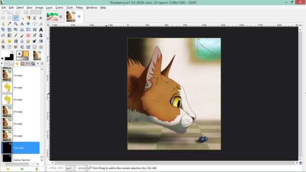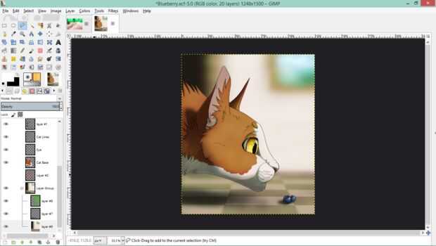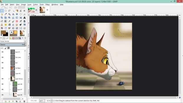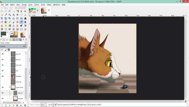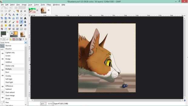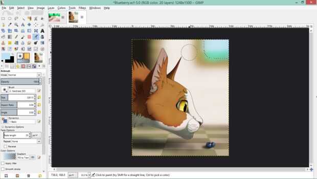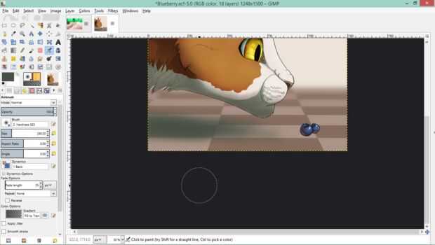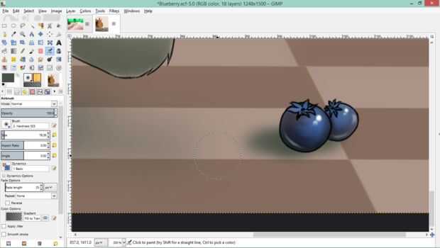 Usando el mismo color como las sombras en el gato, aerógrafo algunas sombras para el gato y las bayas en una capa nueva. Esto da la imagen un sentido de lugar. Ajuste el modo de capa "multiplicar".