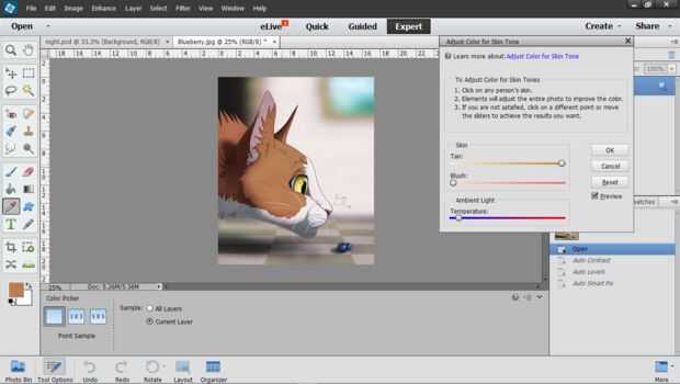 Exportar la imagen como un archivo JPEG y abrirlo en Photoshop. Go para mejorar > color > ajustar los tonos de piel y la parte naranja del gato de la muestra. Mover que los cursores como te ven en la figura 2. Haga clic en 'ok'.