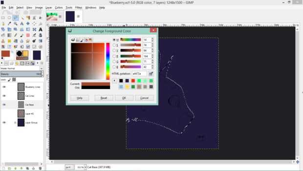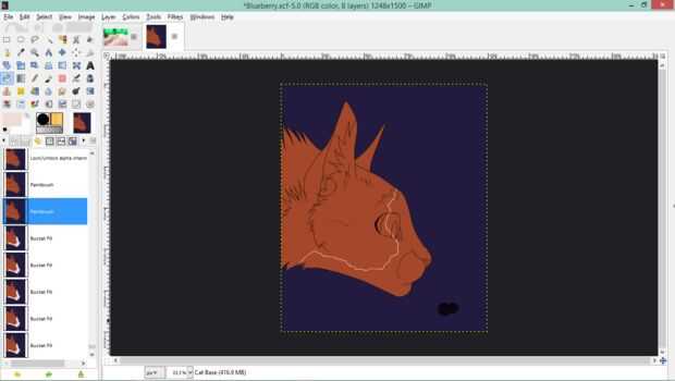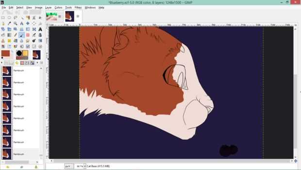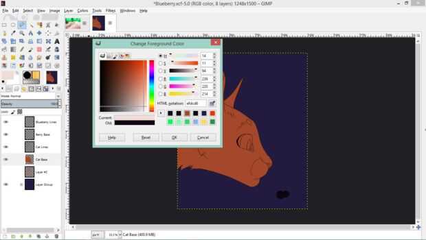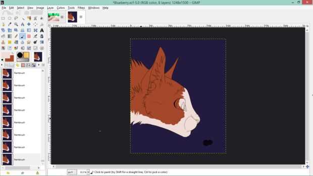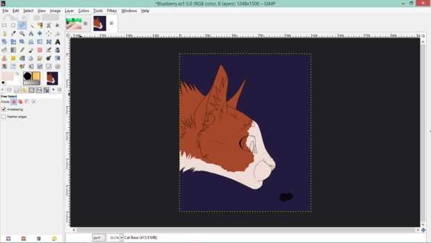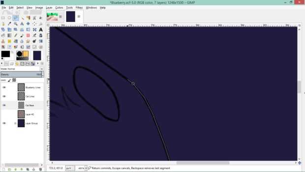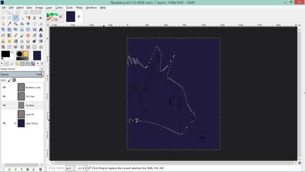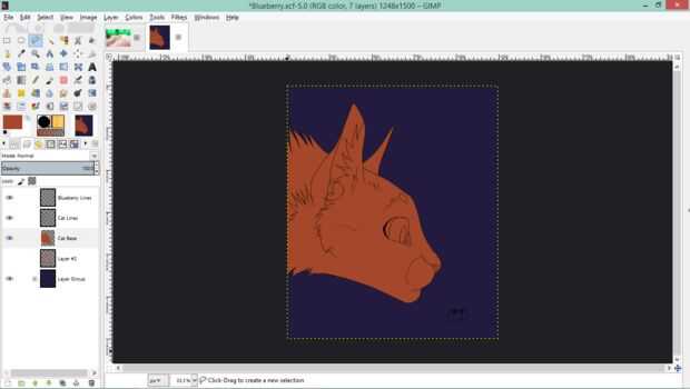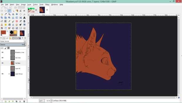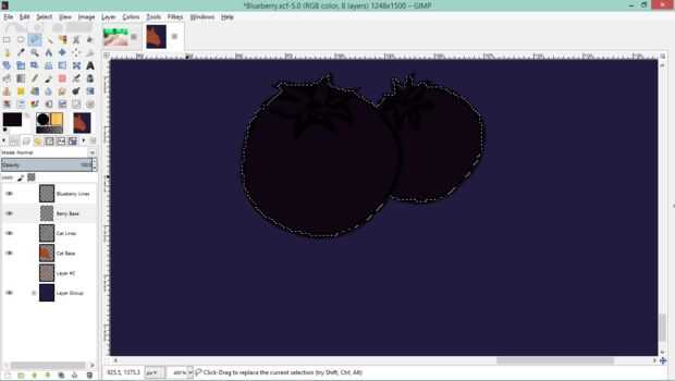 Seleccione el borde externo de tu lineart con la herramienta Selección de lazo. Hacer una nueva capa debajo de la capa sin colorear y rellenar la selección con cualquier color que desee. En otra capa nueva, llene los arándanos. Para hacer el blanco marca en el gato, dibujar el contorno, luego relleno de cubeta. Puede utilizar la herramienta de selección para agregar detalles.