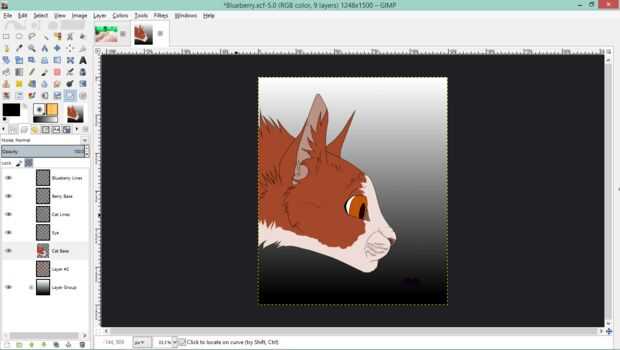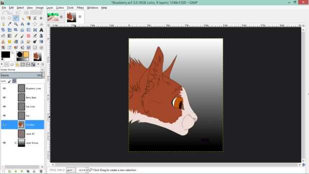 Sugerencia: Bloquear el canal alfa de la capa de color una vez que pones el color base en. Así, cuando se dibujan en esa capa, se mantendrá en el gato.