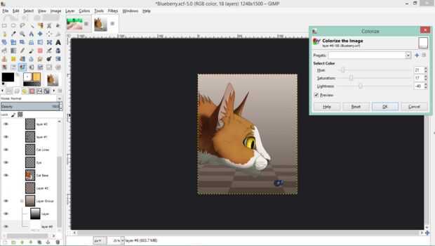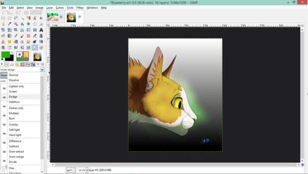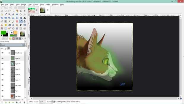 El gato está en el interior con luz fluorescente verdosa, así que hacer una nueva capa encima de todas las capas de sombreado y algunos verdes en los aspectos más destacados del aerógrafo. Ajuste el modo de capa 'dodge' y bajar la opacidad. Eliminar el exceso.