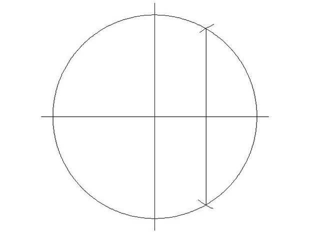 Sin ajuste de la brújula, coloque la punta del compás en el círculo donde cruza la línea horizontal. Ahora dibujar arcos en el círculo anterior arriba y abajo y conectar esos puntos.
