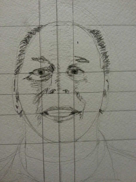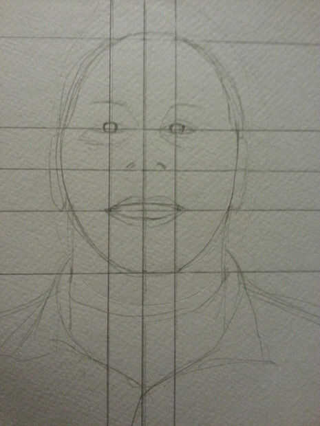 Utilizando el lápiz (HB incluso ni B suave hará), ligeramente bosquejados en las principales características según las directrices.