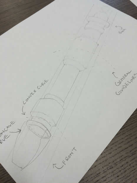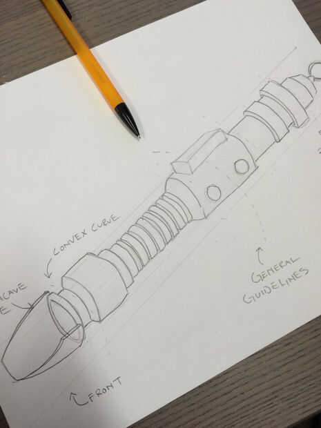 3 - Comience agregando algunas líneas y la forma general de la espada. Las líneas que añade pueden ser dondequiera desea y puede extenderse más allá de sus líneas rectas originales crear un sable de luz que tiene diferentes componentes tamaño.