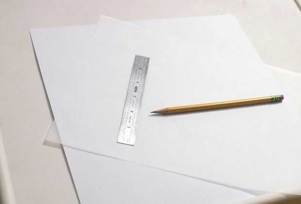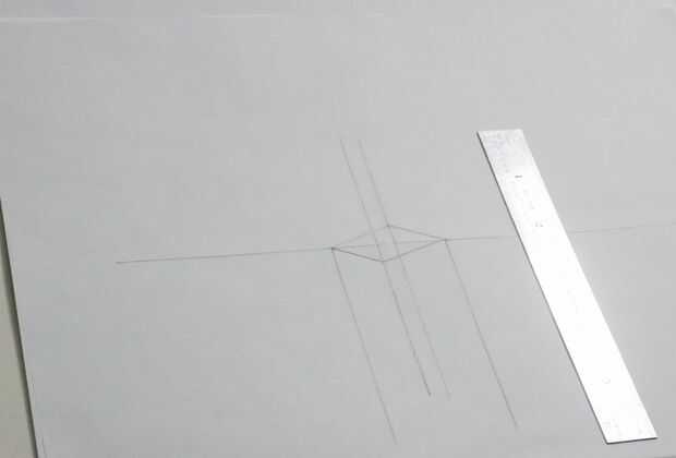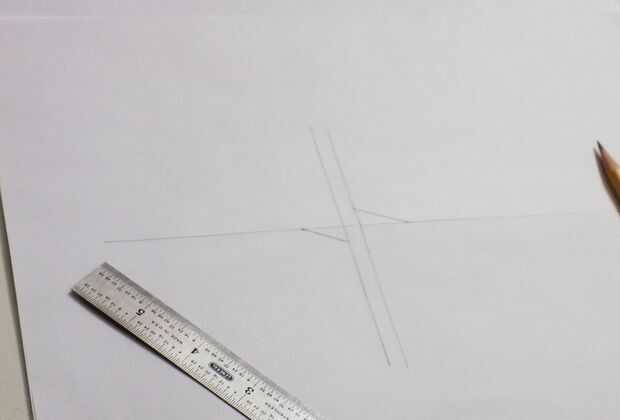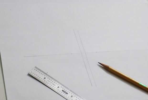 Dibuje una línea horizontal a través de su papel y dos líneas verticales en el centro sobre un 1/4" aparte.