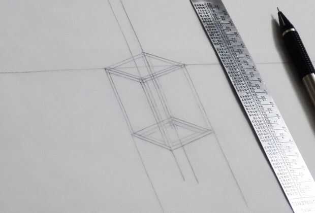 Continúe añadiendo "grueso" a cada uno de los lados dibujando líneas paralelas en el interior de todas las líneas que has dibujado hasta ahora.