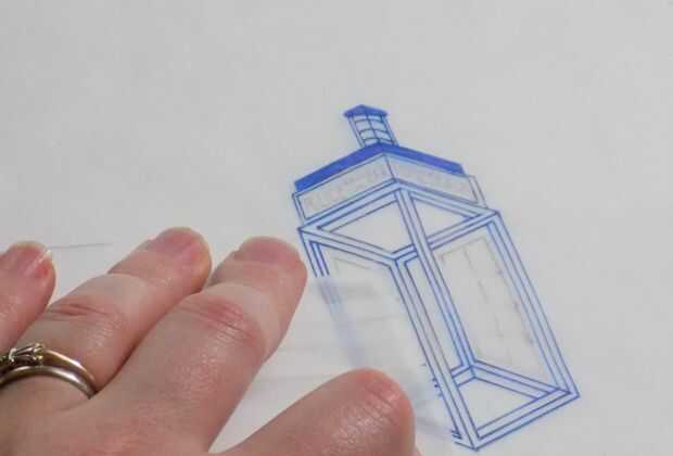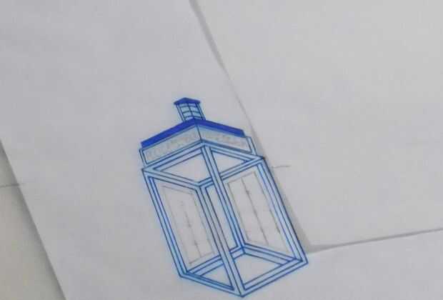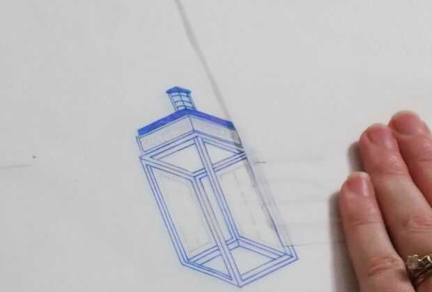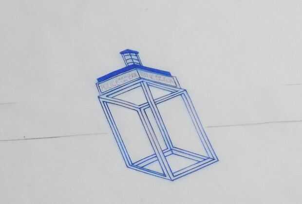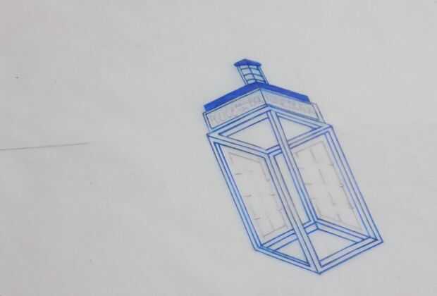 Ahora es el momento para dibujar los lados de la tardis. Dibujar otro trapecio dentro de la forma trapezoidal de los lados y trace una línea vertical hasta el centro de cada uno.