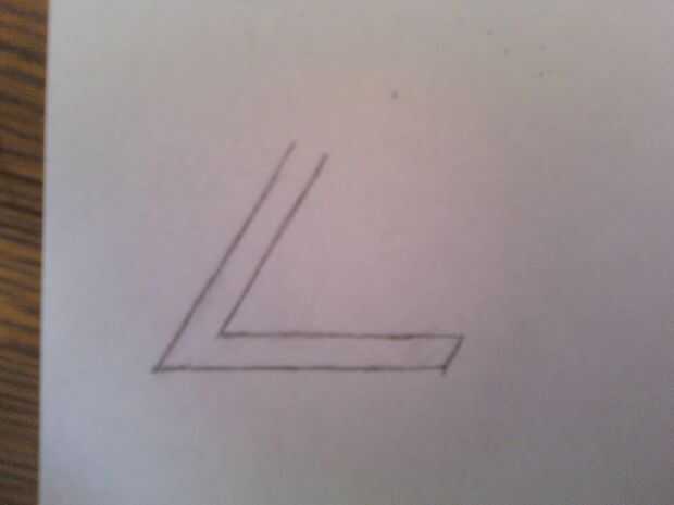 Lo primero que debe hacer es dibujar la forma de L con un ángulo de unos 60 grados. Cerrar el extremo inferior con una línea que es paralela a la primera cara, como se muestra, pero no cerrar la parte superior de la L todavía.