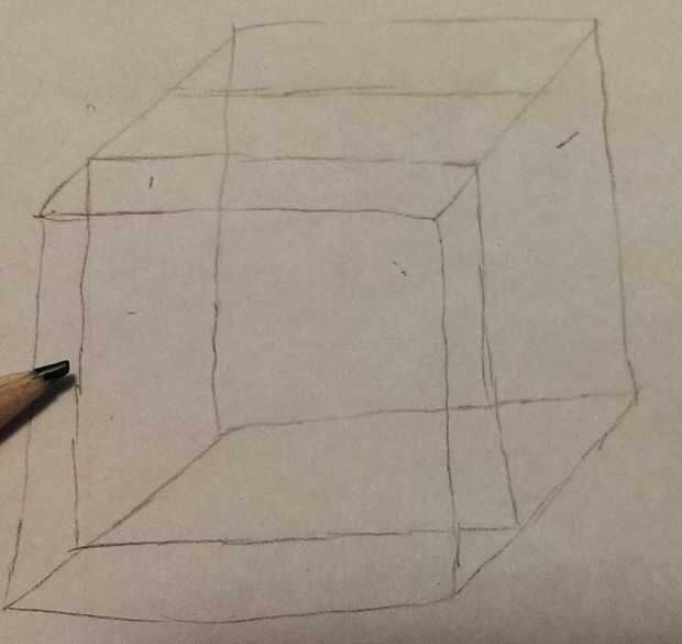 Dibujar un cuadrado paralelo a la cara del cubo.