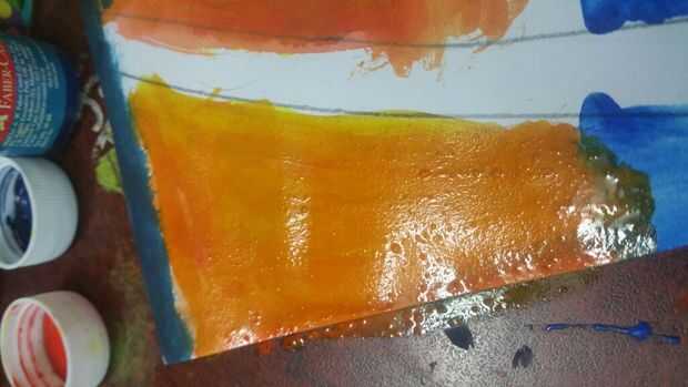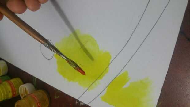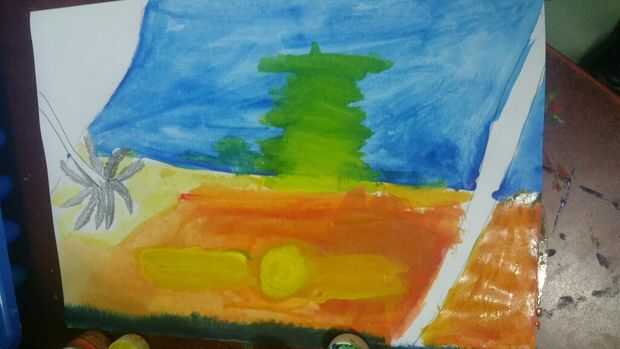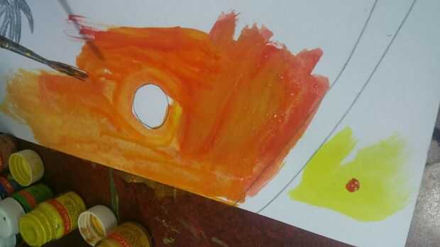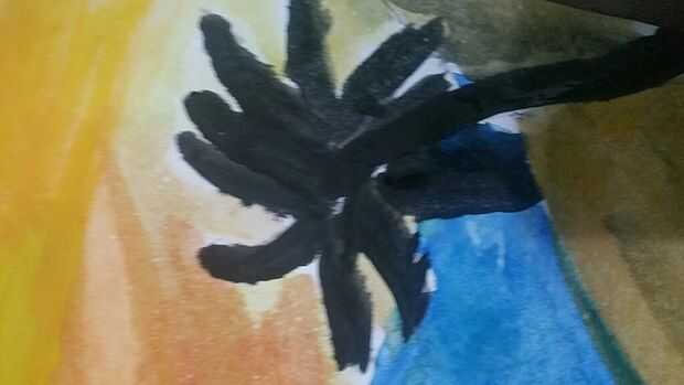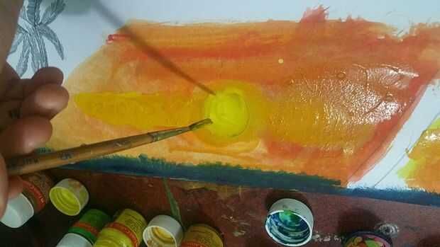 luego según el color de la escena entera scean .using negro color, colorea los árboles. Entonces de color el agua de color azul. Entonces el sol amarillo del color