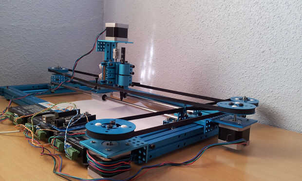 Plotter ya montado, con la electrónica integrada y donde podemos apreciar mejor la particularidad del tercer eje.