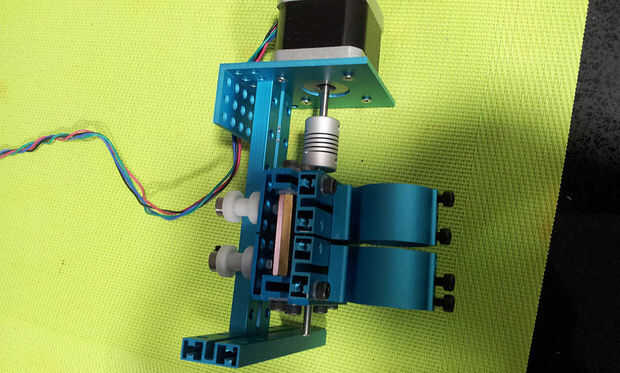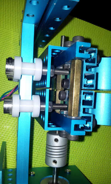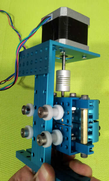 El tercer eje Z se compone de un motor paso a paso que - gracias a un eje roscado ONUDI una él - recomienda subir o bajar con precisión la estructura donde podremos fijar el lápiz o la multiherramienta+linterna para grabar.