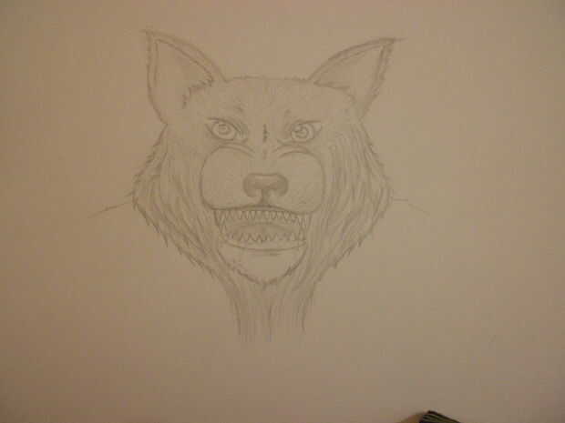 Dibujo a lápiz hombre lobo Halloween paso a paso. (8 / 9 paso)