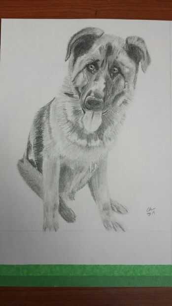Como se puede ver he cortado los extremos de las piernas pobre del perro por proporción y terminado mi último retrato del animal doméstico. He oscurecido algunos valores y aligerado a otros. Esto crea contraste que puede hacer un dibujo más realista. El final lo que hice fue borrar el grafito manchado todo el dibujo de la página en blanco. Si haces esto se ve más profesional y por lo tanto obtendrá contratado más como artista.