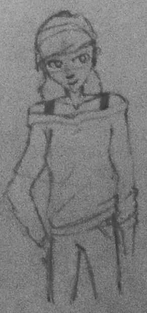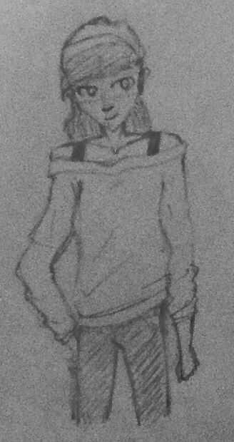 Suéter porque me siento bastante cómodo con dibujar ropa y pliegues. Es una maldición para algunos. Pero yo todavía no he captado los conceptos básicos de anatomía, así que perdóname.