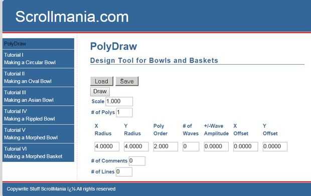Para empezar. ir a PolyDraw y ajuste la ventana de número de polígonos en "1". Obtendrá una pantalla con un solo poli un Radio X de 4, un radio Y 4, y una orden de polietileno de 2". Haga clic en dibujar y usted recibirá un PDF con un círculo tiene un diámetro de 8"(radio 4").