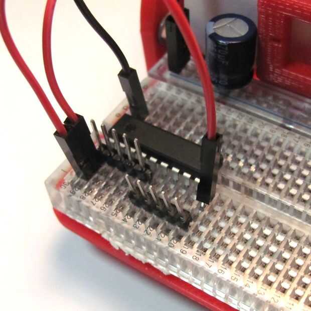 - Conecte un puente rojo del pasador inferior de darlington izquierda a la derecha una fila de darlington (imagen 2).