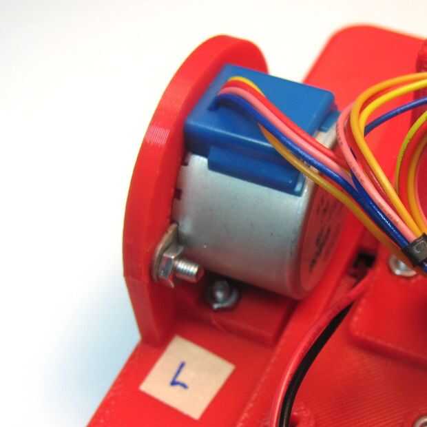 1. Inserte una tuerca en el soporte paso a paso y sujete a la parte superior del chasis con un tornillo (imagen 1).