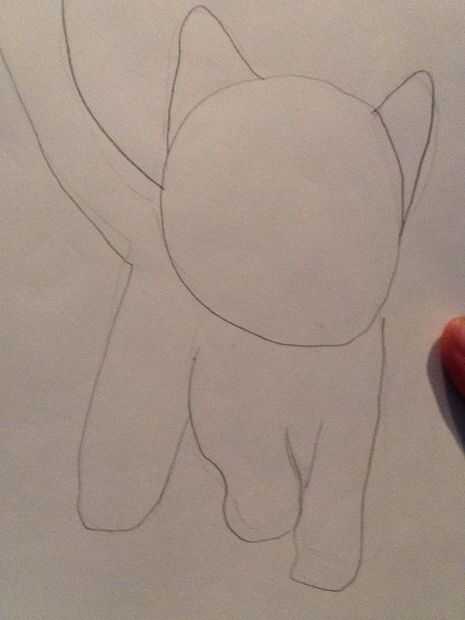 Primero dibujar círculos básicos y formas de una buena foto de un gatito.