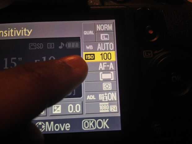 La ISO afecta a la cámara cómo de sensible es a la luz. Para ajustar el ISO, botón 'i' en la pantalla de configuración. Una vez que presione el botón de la pantalla se pondrá gris. Desde allí utilizar los botones direccionales para obtener a la ISO y selecciónelo con el botón 'Aceptar'. Esto debe establecerse bajo en alrededor de 100 o 200 por lo que la luz no será demasiado dura.