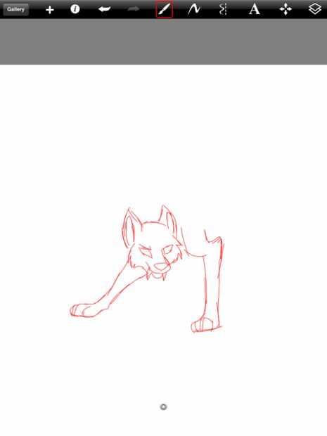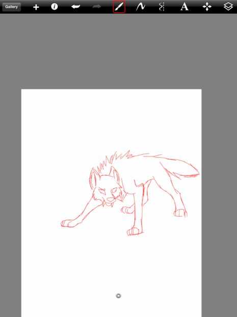 Para comenzar el dibujo, primero necesitará bosquejar hacia fuera el lobo. Seleccione el pincel, herramienta de dibujo y reducir el tamaño y en opacidad 100%. Elegir el color rojo y entonces aproximadamente comenzar a dibujar. Asegúrese de que el bosquejo no es sin embargo demasiado áspero, o no serás capaz de decir qué líneas para trazar más adelante. Asegúrese de que el lobo tiene los colmillos más largos como colmillos de vampiro. También asegúrese de que los colmillos sobresalen de las esquinas de la boca en lugar de la parte delantera. Si es necesario, mire una foto de un lobo, anime preferiblemente, para que pueda ver cómo son las patas y el hocico. Anime es más fácil buscar en dibujos como este porque no hay piel en el camino de las líneas importantes.