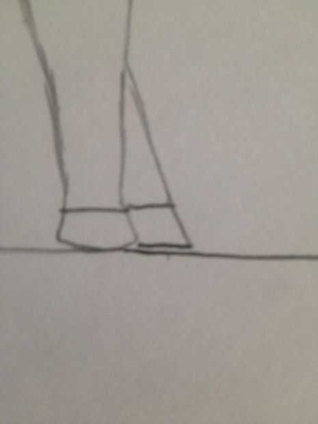 Ahora a mitad de la pierna delantera y hacer una línea inclinada. Hacer su pezuña y otra línea inclinada subiendo.
