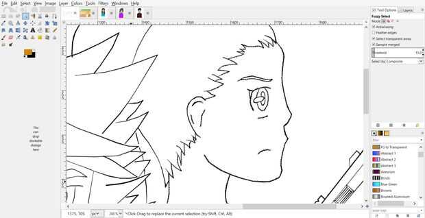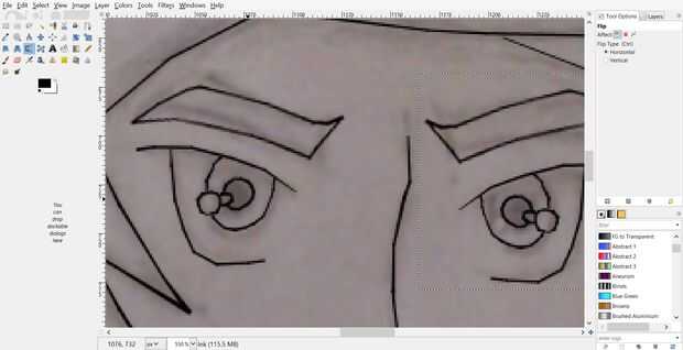 Crear una nueva capa que etiqueta de "Tinta" (Asegúrese de que el ajuste es transparente) y poner encima de la capa de "Dibujo". Traza sobre las líneas de lápiz con la herramienta de tinta (yo usé tamaño 1). Presionada la tecla Mayús para hacer líneas rectas. En una nota lateral, sólo uno de mis personajes tienen ambos ojos mostrando, en lugar de trazar dos ojos copiado y había pegado la primera entonces movido de un tirón lo (el único problema que me topé con estaba cambiando los círculos de reflexión en los ojos). Después de terminar a su vez en la trazado de la visibilidad de la capa de "Dibujo" haciendo clic en el símbolo del ojo al lado del nombre de capa en el cuadro de capas, crear una nueva capa que es totalmente en blanco y ponerlo debajo de la capa de "Tinta". El propósito de esta capa es ayudar a sacar sólo los colores bien en ciertas situaciones porque un color transparente y el bajo color blanco le dará el aspecto específico que necesites (si piensa sobre el uso de todos los colores opacos no se preocupen esta capa).